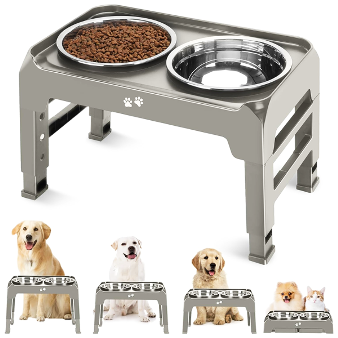 - 📏 Altura Ajustable para Todas las Edades: Nuestros cuencos elevados se ajustan fácilmente a 4 alturas diferentes: **3.7", 9.2", 10.75" y 12.36"**, garantizando la postura ergonómica perfecta a medida que tu mascota crece.