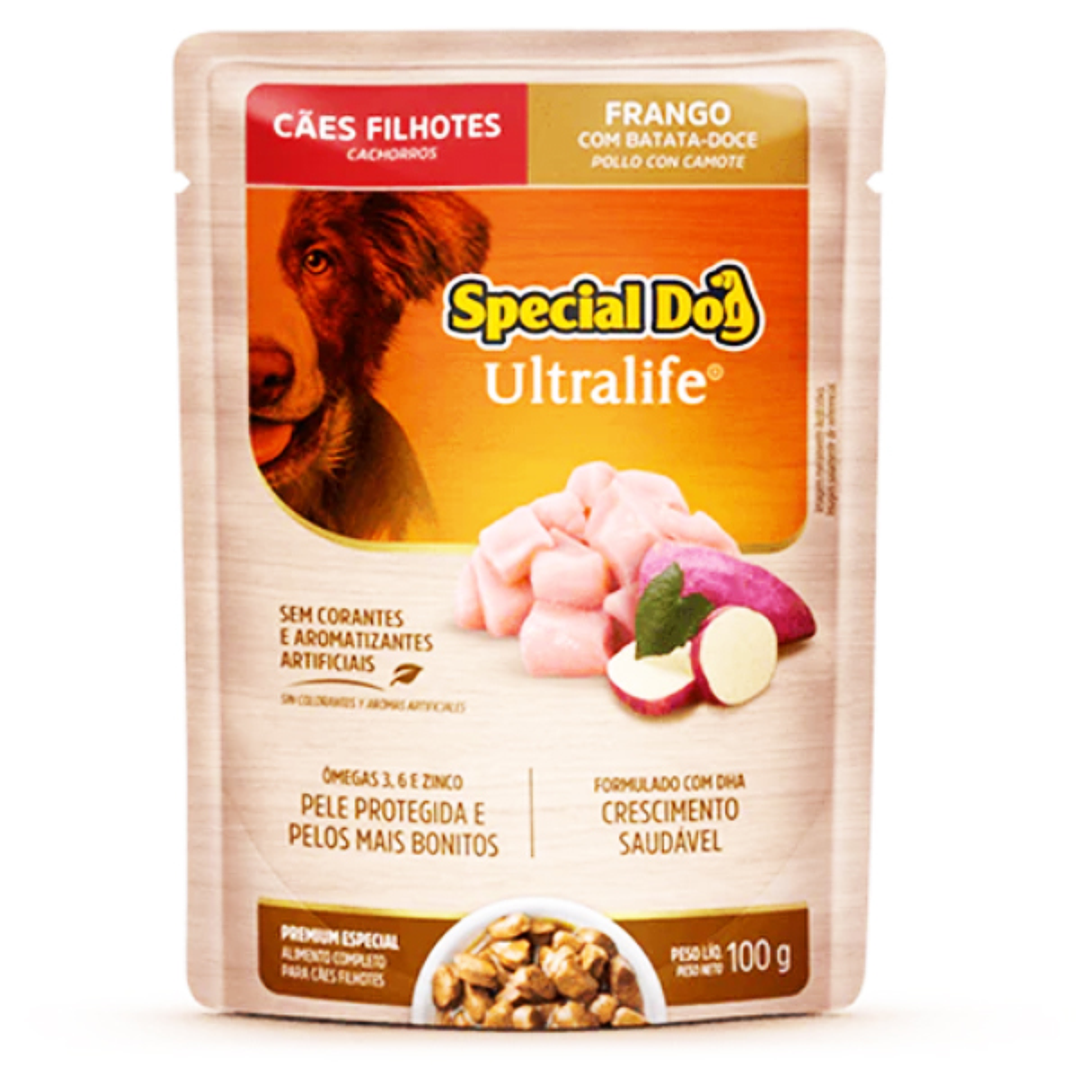 Special dog sachet para perro cachorro sabor pollo y papas. Sin colorantes ni aromas artificiales. Producido apra un crecimiento saludable. Incluye omega 3, 6 y Zinc. Special trabaja con una amplia gama de productos y busca la calidad de vida de las mascotas, ofreciendo siempre seguridad y cuidado especiales a través de la alimentación. La línea Special Dog premium cuenta con ingredientes seleccionados y de alta calidad, que garantizan la energía y salud en el día a día de los animales. En todas las fases de la vida, Special actúa llevando productos de altísima calidad. La preocupación va más allá de la calidad nutricional y de las formulaciones.